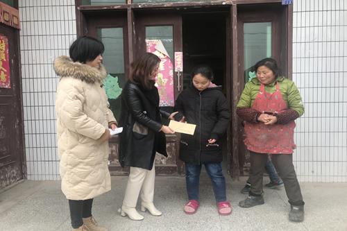 为了积极响应县妇联春节期间开展的“把爱带回家”结对慰问春蕾儿童、困境儿童活动。2020年1月15日下午,县残联妇联来到入户帮扶慰问结对的小官庄镇留守、困境儿童王玉露同学家,陈华主席与孩子亲切沟通交谈,了解孩子思想、心理、生活与学习情况,鼓励孩子积极面对目前的困难,自强不息,好好学习,并把慰问金交到孩子手上,愿孩子度过有意义的寒假和一个祥和、温暖的春节。