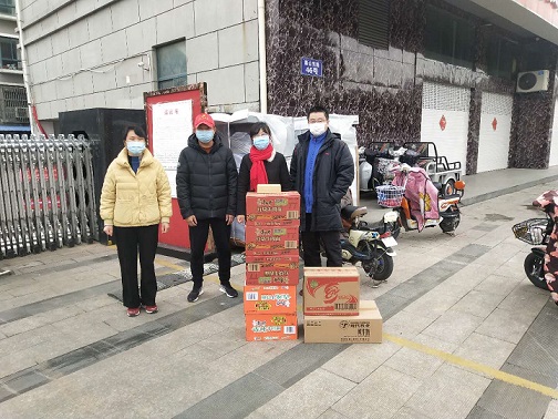 2月19日下午,县残联理事长谢爱华一行4人分别来到北河社区-北奥康城小区、白田社区-京华国际小区看望和慰问奋战在一线党员志愿者和社区一线工作人员。为他们送去额温枪、消毒液等防疫用品及牛奶、方便面等慰问品。谢理事长在赞扬社区防疫人员无私奉献做好疫情防控工作的同时提醒他们要注意自身防护,带好口罩、注意日常消毒。