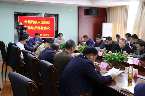 4月28日下午,县政府残工委在县残联三楼会议室召开全县残疾人证换发工作动员部署会议。县政府办、县残联、县卫健委、县公安局、县民政局、县财政局等相关部门负责同志,各镇政府分管领导、残联理事长、专职委员参加了会议。会议由县残联副理事长高德明主持。首先由县残联陈爱萍理事长解读了县政府残工委文件《关于做好全县十年有效期满残疾人证换发工作的通知》,全县10年到期换证工作从当前开始至10月份结束。接着县政府办汤文武副主任讲话,结合我县实际,他提出了四点意见:一是做好残疾人证换发工作,要深化三个“认识”:一是换证有利于进一步掌握各类残疾人情况,为党委、政府制度扶残助残政策提供科学依据;二是换证有利于对不同残疾等级的残疾人给予相应救助,确保各项助残优惠政策落到实处;三是换证有利于对各类残疾人进行分类指导,精准帮扶,促进我县残疾人事业加快发展。二是做好残疾人证换发工作,要坚持“三个原则”:一要坚持就近就便原则;二是坚持实际实效原则;三是坚持应办尽办原则。三是做好残疾人证换发工作,要抓好“三个环节”:一要扎实做好基础工作;二要深入开展宣传发动;三要严格规范审验核查。四是做好残疾人证换发工作,要做好“三个结合”:一要与残疾人基础数据库建设相结合;二要与残疾人基本需求调查和“三进三查”工作相结合;三要与优惠政策调整落实相结合。