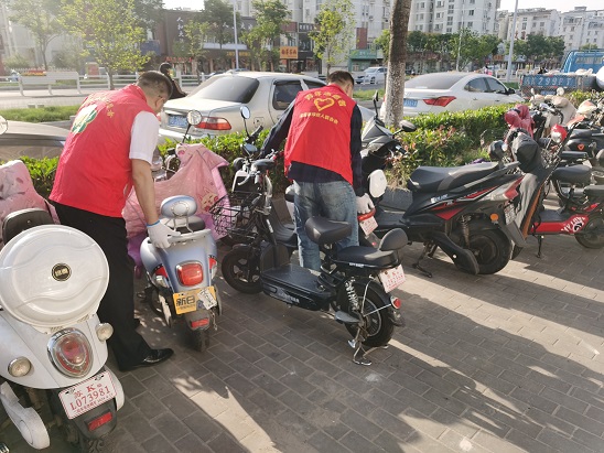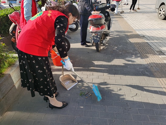 5月20日清晨,党员们在理事长陈爱萍的带领下,来到包干路段进行卫生清洁活动,清理路边的杂草、烟头、塑料袋、落叶等,将停车位上的电动车摆放整齐。经过大家的努力,包干路段内变得干净整洁。
