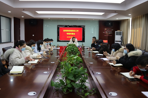 1月18日下午,县残联召开疫情防控工作专题会议,传达学习了县委王逍霄书记在县委常委(扩大)会专题听取疫情防控工作汇报会议上的讲话精神,全面部署残联新冠疫情防控工作。县残联理事长陈爱萍主持会议,机关全体人员及下属单位中层干部参加会议。