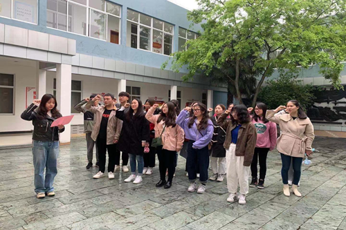 参观结束,全体成员在纪念馆庭院里重温入团誓词,团支部书记丁婷婷领读,铿锵有力的宣誓声响彻院内。宣誓结束,大家在柳堡二妹子模范民兵活动中心门口合影留念。