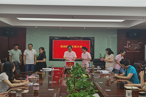 7月1日上午,县残联党支部于综合服务中心三楼会议室召开党员大会,研究讨论发展对象朱茜等4名同志接收为中共预备党员及预备党员王洁同志转正事宜。党支部书记陈爱萍主持会议,支部全体党员参会。