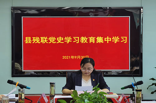 9月30日上午,县残联开展9月份党员“统一活动日”暨党史学习教育集中学习活动。党组书记、理事长陈爱萍主持会议,县残联全体党员干部、机关全体人员及下属事业单位中层以上人员参加。