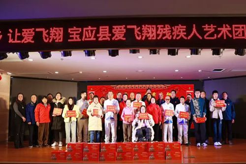 爱飞翔残疾人艺术团执行团长高德明、宝应县情满荷乡爱心协会解洪俊会长一行与爱飞翔残疾人艺术团的团员们齐聚一堂,共叙情谊、共迎新春。