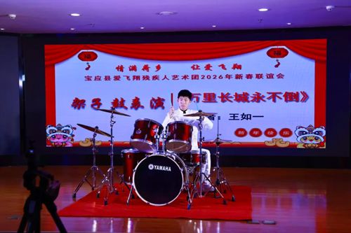 爱飞翔残疾人艺术团的团员们也带来精彩演绎:架子鼓表演《万里长城永不倒》节奏铿锵、气势如虹,展现出不屈不挠的生命力量;电吹管演奏婉转悠扬,葫芦丝独奏《渔歌》意境悠远,民乐合奏《喜洋洋》喜庆祥和,将传统韵律与生活热爱完美融合;歌曲《搀扶》情真意切,歌伴舞《梦里水乡》柔美雅致,女声独唱《梨花颂》韵味悠长,每一个节目都凝聚着团员们的汗水与坚持,用艺术诠释着对生活的热爱、对梦想的追求。