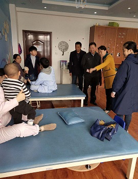 4日上午,县残联理事长谢爱华、副理事长胡大成在中心负责人张学新陪同下走进康复中心看望康复中心老师和孩子们。