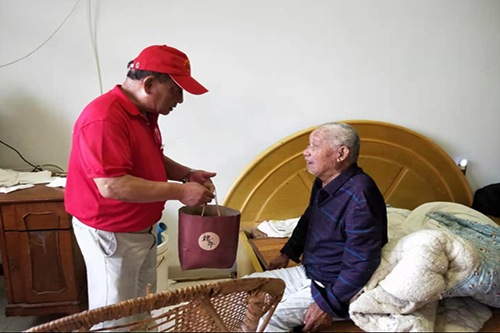 天平社区第二届“党建十公益” — 红色创投服务对象是指户籍在社区内且居住在集镇范围内的残疾、孤独老人群;活动现场向他们赠送了端午节节日礼品粽子、咸鸭蛋及毛巾、洗发露等夏季用品。对行动不便的特殊老年人,即户籍在社区内且居住在集镇范围内的残疾、孤寡人群进行入户赠送端午节节日礼品。志愿者服务人员、锣鼓队、进行入户服务活动。生病在家的残疾人王金成接到了社区及志愿者们送来的礼物高兴地说 “大热天的,谢谢你们啦,让我足不出户就可以吃到粽子和鸡蛋,非常感谢社区的关怀,还惦念着我。