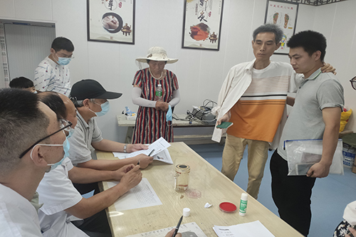 7月15日下午县、镇残联工作人员及评残专家在山阳镇卫生院为今年十年到期残疾证换证人员进行换证验证工作。