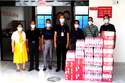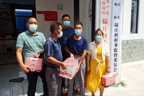 8月11日上午,郝名涛在镇民宗科统战委员高晓辉的带领下,顶着烈日酷暑,带着残疾人朋友的心意,利用募集的千余元善款购买了八宝粥、牛奶、矿泉水、方便面等物品30多件,来到曹甸镇陆庄村核酸采样点,慰问在抗疫前线的党员、干部、群众以及志愿者们,对他们夜以继日、严防坚守、废寝忘食、不辞辛苦的工作作风和感人精神,表示由衷地敬佩和感谢!并提醒大家,在做好抗疫工作的同时,要注意防暑和防护,劳逸结合,保重身体!