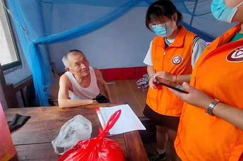 8月21日一大早,团队30多名志愿者分头行动,为全镇13个村居的99户家庭上门送上蔬菜、油、肉、面包等食品及口罩、毛巾等生活物资,以解决他们一时之急。这份名单里的五保户、低保户、残疾人等团队长期关爱的服务对象。