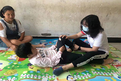 康复中心老师每到一户儿童家中,细致评估儿童情况,指导家长如何进行家庭康复训练,记录残疾儿童家长的家庭康复诉求,填写好残疾人支持性康复服务卡。特别在仁里村残疾学生乔同学家里,现场进行了康复互动,叮嘱他要好好学习,争取考上高中,做社会有用之人,临别时老师们向每位儿童赠送了一份礼品。