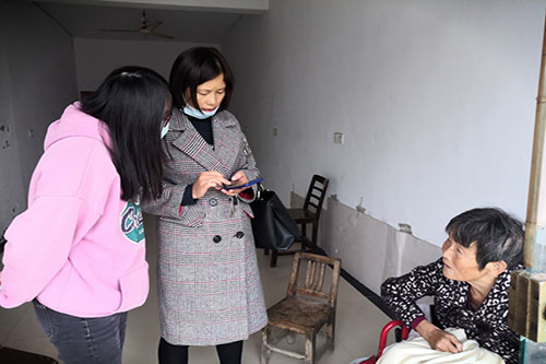 10月20日上午,县残联教就部主任郑嵘一行3人来柳堡镇指导残疾人基本状况调查工作。在镇、社区工作人员陪同下,郑主任一行先后来到亚宝社区重度残疾人华正凤和胡定顺两户家中,社区工作人员打开残疾人服务手机APP.