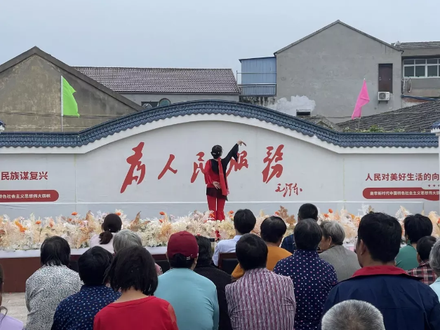 由天平社区夕阳红舞蹈队带来的民俗舞蹈《草原祝酒歌》拉开整场演出的序幕。演出现场,淮剧 《吴汉三杀请公主莫流泪》《疫情三句半》、舞蹈 《雁南飞》等节目依次亮相舞台,演员精彩的表演博得现场居民朋友的阵阵掌声。夏集镇残联李春泉的评书表演,把活动气氛推向高潮。