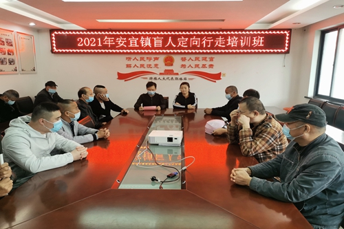 为了更好普及盲人定向行走知识,推动盲人定向行走工作的深入开展,将盲人定向行走知识引入到盲人家庭,认更多的盲人能够独立、安全行走,走出家门,参与社会生活,提高生活质量。11月1日,安宜镇举办2021年盲人定向行走培训班,20余名盲人及其亲属参加了定向行走培训。培训班特邀县康复中心郭艳老师到现场授课。