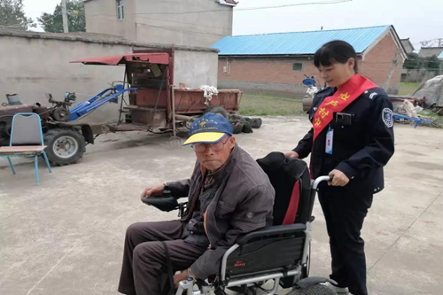 灶户村妇联主席沈素英将腿脚不便的老人李老爹用轮椅推至周边的水泥路上转转,虽然沿途的景色已经看了很多遍,但是像这样被孩子辈推着出来的次数还真不多,老人既开心又激动。“非常感谢你们经常来看望我。我行动不便,好多事不好做,幸亏你们常常来帮我打扫卫生、检查身体……”李老爹开心地说。这是泾河镇志愿者活动的一个缩影,像这样的活动每个村居每个月都要组织一次。