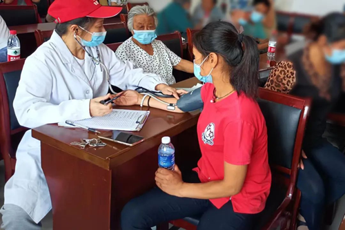村医志愿者在炎炎夏日,为中老年人及残疾人之家的工疗人员开展“夏季养生保健知识讲座”,现场进行“点单式”量血压、测血糖。