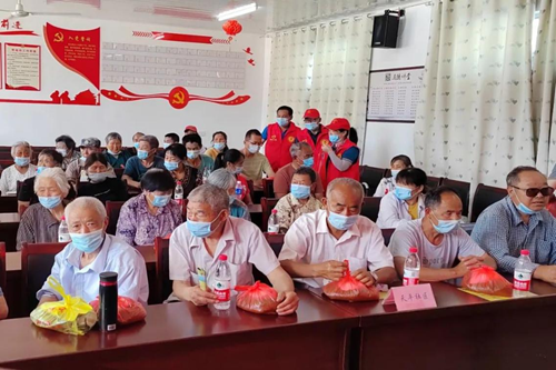 活动现场,志愿者为60多位老人及残疾人量血压测血糖,发放防暑降温物品。还专门到社区空巢老人几户家庭进行走访慰问,赠送物资。“空巢”听力残疾老人周家俊一生未娶,领养的一个女儿已外嫁,常年独居的老人也是志愿者们常年牵挂的老人。志愿者们不仅经常帮助老人打扫卫生,关心日常,关注身体,还陪老人聊天,逢年过节配送生活节日慰问品。让空巢老人“空巢”不“空心”,让老人老有所依老有所乐。