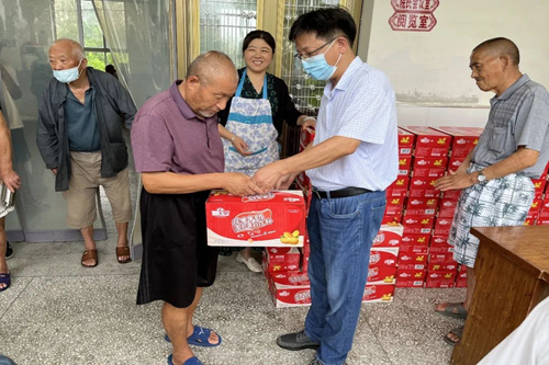 7月18日上午,我镇社会事业局副局长,残联理事长余永芝一行人到镇敬老院开展“夏日送清凉 ”慰问活动,为老人和工作人员送去慰问品,叮嘱他们要注意夏季防暑降温和自身安全,慰问助老之行温暖着全院上下,老年朋友们真切地感受党和政府的关心关爱,让每一位老人感受到老有所养、老有所依、老有所乐。