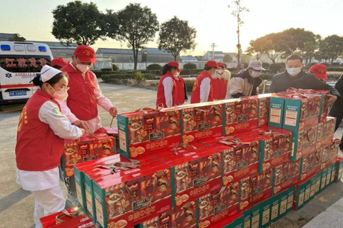 志愿者们还为老人们带来了慰问品,祝他们新年快乐,兔年安康。