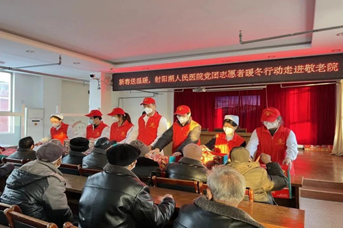 为进一步弘扬敬老爱老助老的传统美德,让敬老院的老人过上祥和温馨的春节。1月17日下午,我院党团志愿者们再次走进射阳湖敬老院开展暖冬行动--“迎新春 送温暖”志愿服务活动,为老人们送去了新年祝福,给寒冷的冬季带去一丝丝暖意。