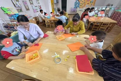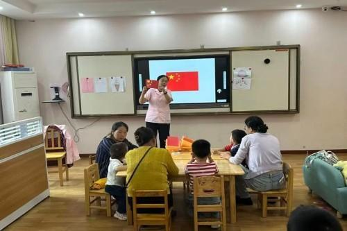 老师们通过展示国旗、月饼等图片,配合故事讲解,帮助孩子们直观理解国庆节的家国意义与中秋节的团圆内涵,为手工创作奠定认知基础。针对不同儿童的需求,老师们还在讲解中适时引导发音练习,让“国旗”“月亮”“团圆”等词语在互动中得到强化。