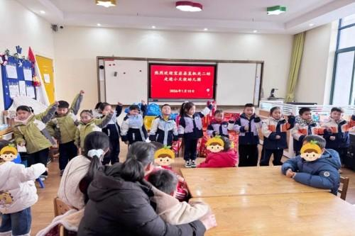 表演结束后,机关二幼的小朋友们亲手将精心准备的围巾、零食等礼物送到小伙伴手中,用纯真的笑容传递善意。最后,两园师生齐聚一堂合影留念,定格下这温馨美好的瞬间。