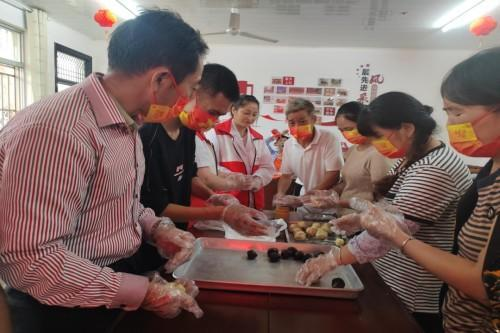 活动最后,大家齐聚参与“团圆做月饼”环节。在烘焙师的指导下,残疾朋友们亲手捏制面团、包裹馅料并压模成型。随着印有“豆沙”“五仁”字样的月饼陆续完成,大家互相展示分享,在欢声笑语中提前品尝到中秋的甜蜜与温情。